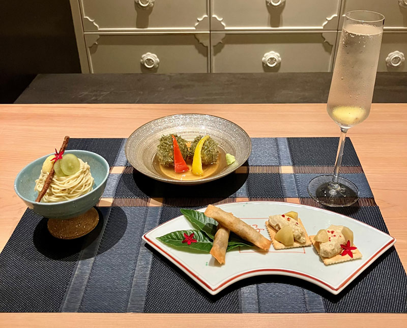 「笠間栗焼酎ハイボール」とのペアリングでのご提供。